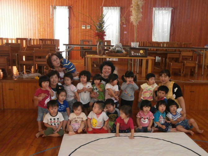 お話を聞いたり歌をうたったり、お相撲を取りました。