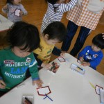 ペンでお絵かきしたり、シール貼りをしたりしましたよ![]()