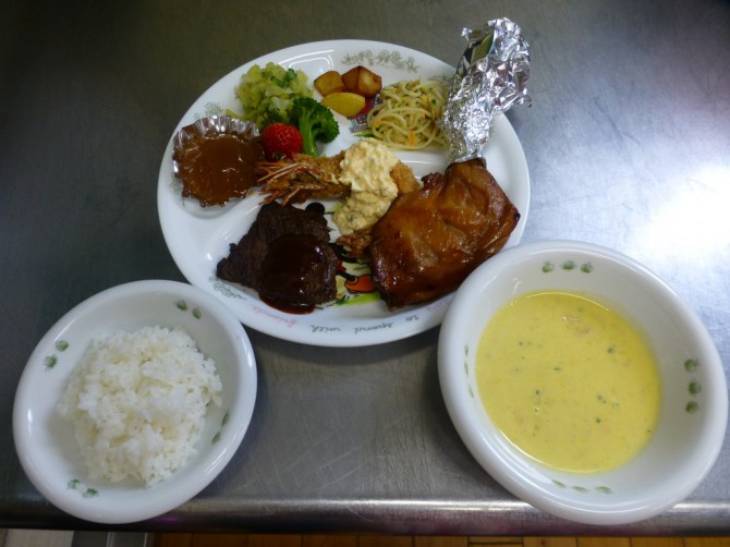 ヒレステーキを選んだ子ども達は、ナイフとフォークでお肉を切って食べたり