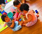 支援センターに、赤ちゃんたちが遊びにきてくれます初めての場所に、最初は、とまどっている、お友だちもすぐに打ち解けてなかよくなりました