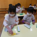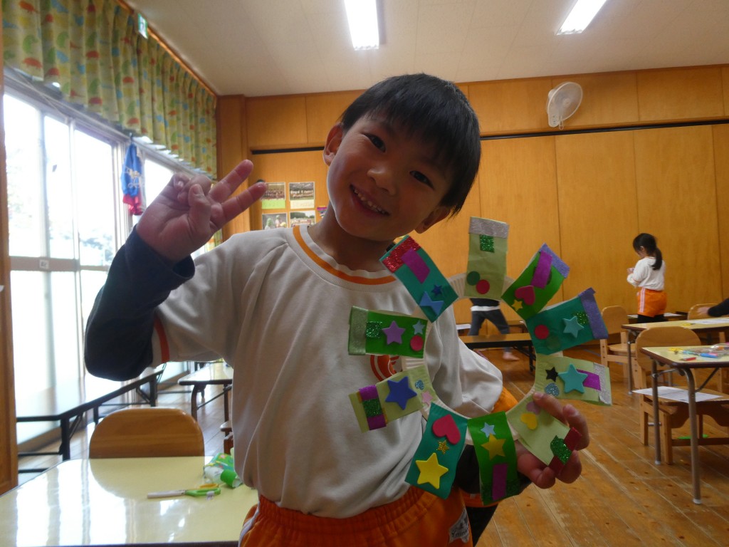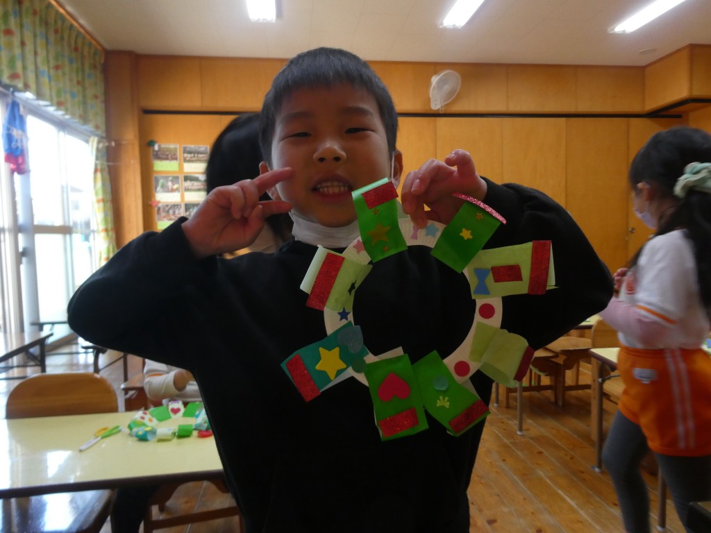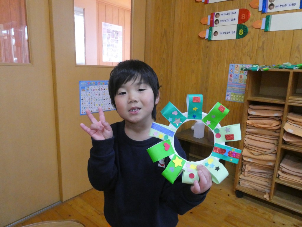 クリスマスリースのデコレーションは好きなパーツを選んで貼りました
