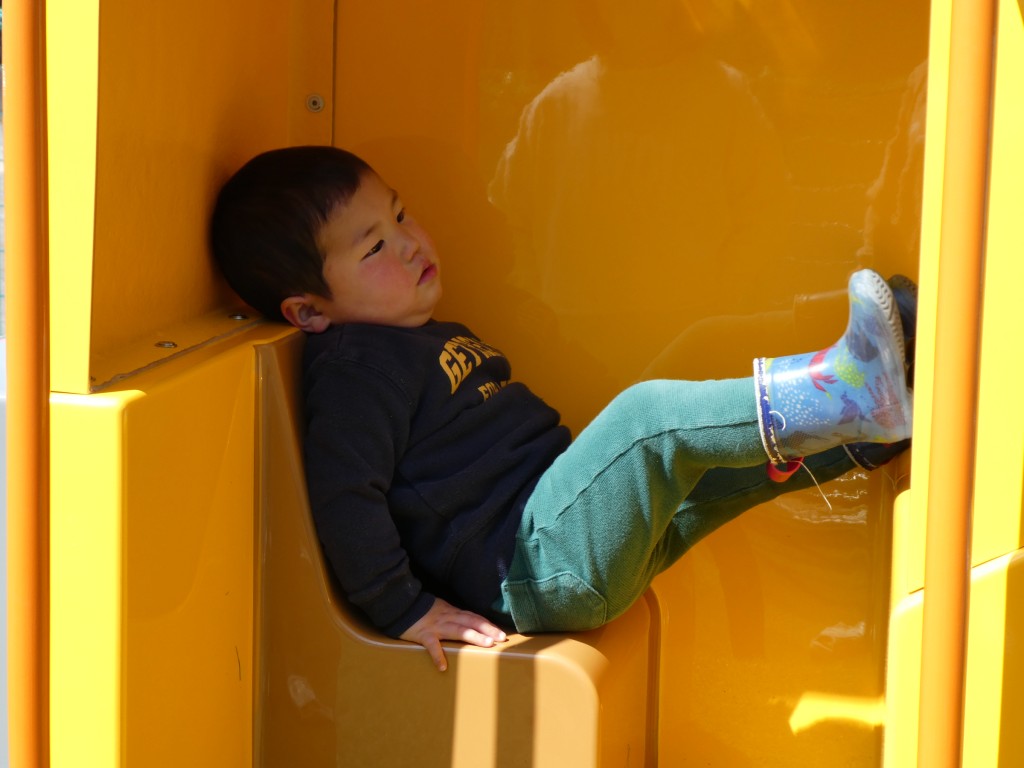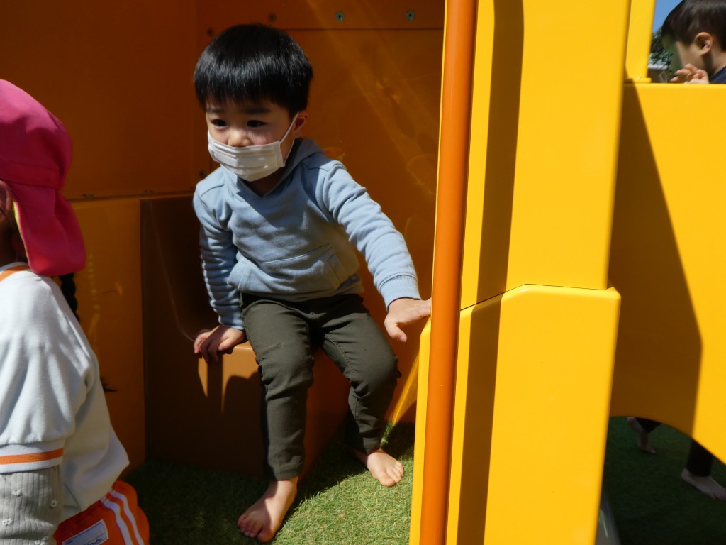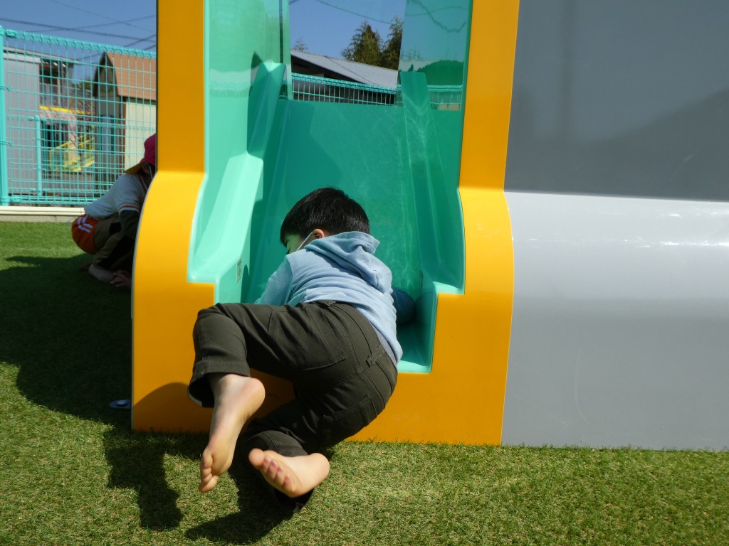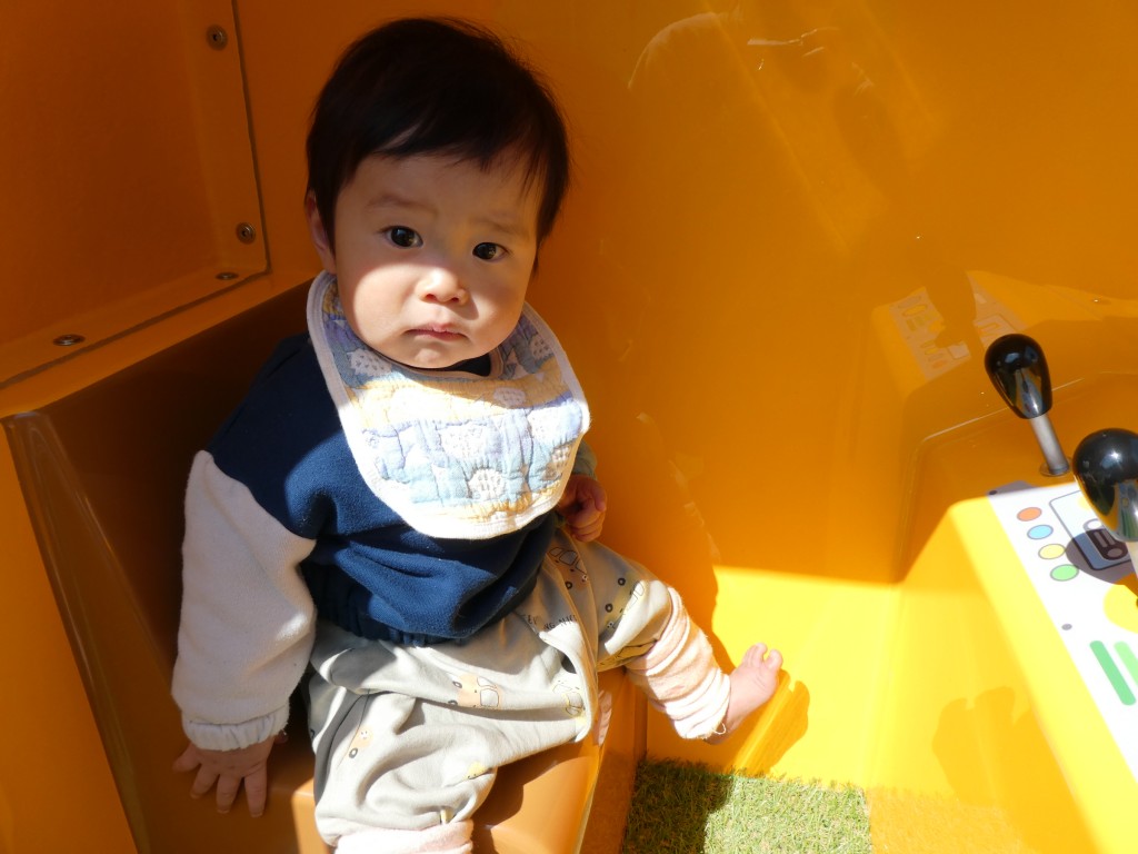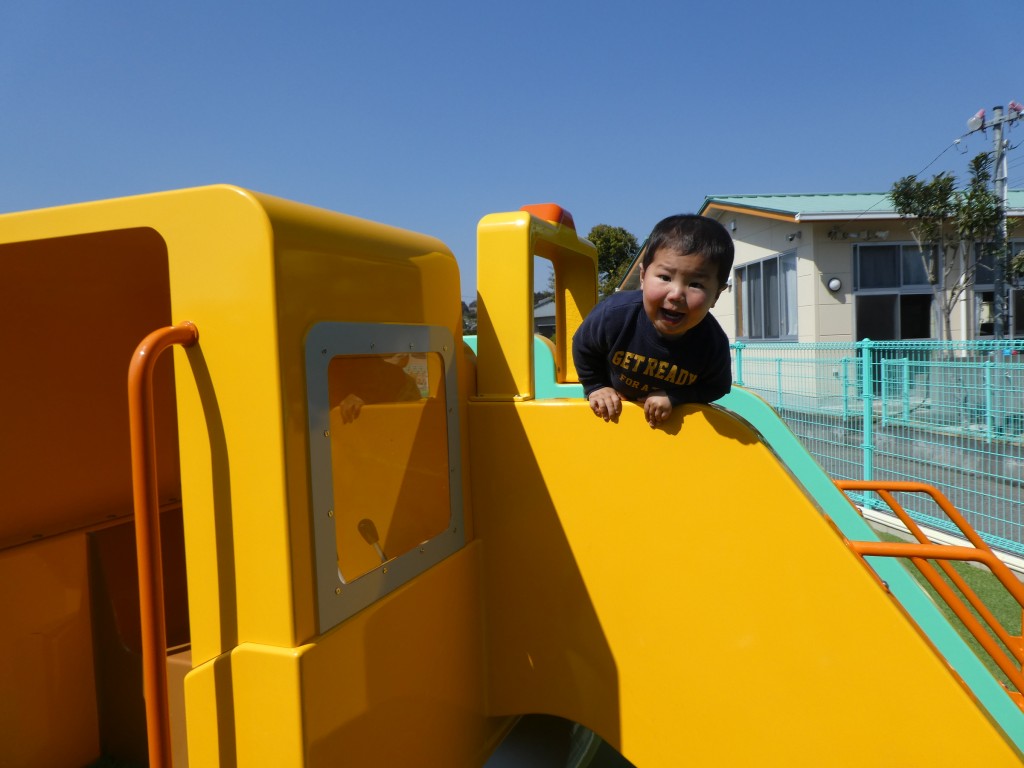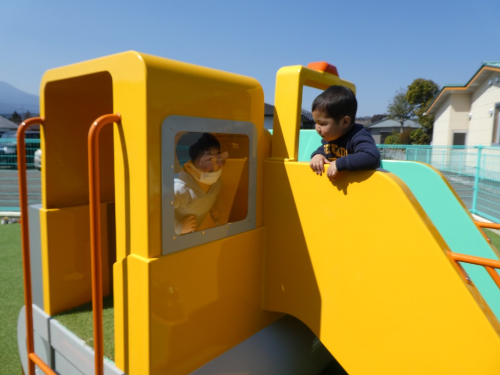 すべり台をすべったり、運転席に乗って楽しく遊びました![]()