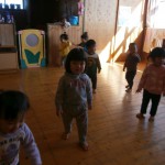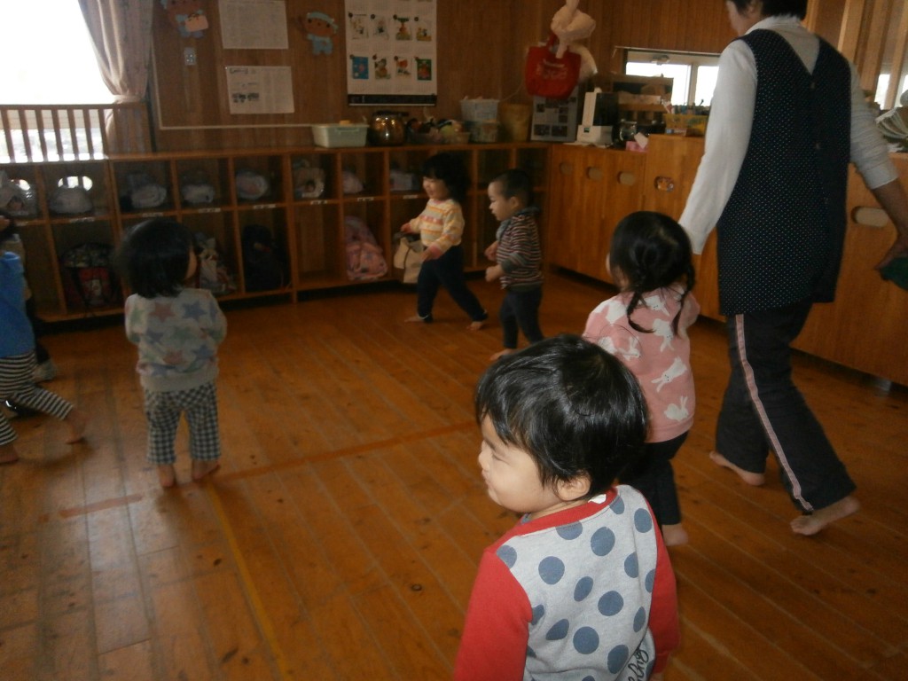 ピアノの曲に合わせて「マラソン、マラソン、1234・・・」と元気に走る子がいたり、