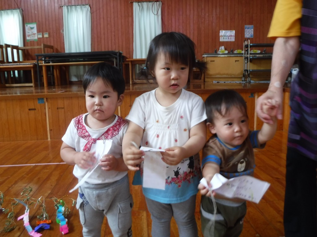 作った五色の短冊はおうちの方が書いてくださった願い事の短冊と一緒に飾りました。