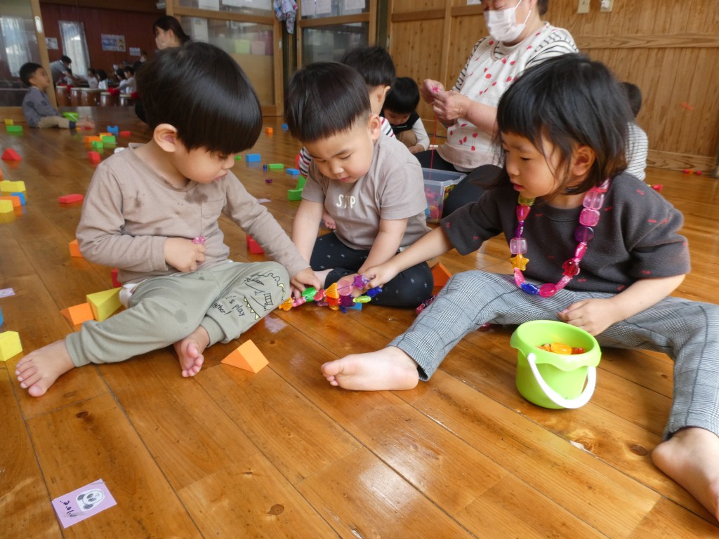 先生に作ってもらった、ネックレスやブレスレットをつけて遊びましたよ。