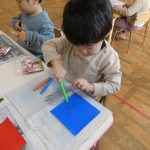 好きな色の折り紙を選び、ペンで絵を描きました