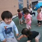 13日は屋上でしゃぼん玉やフープ、長縄で遊びました。