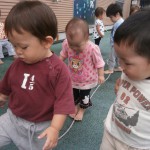 初めての屋上は広くて走り回ったり、リズムをしたりと楽しめました