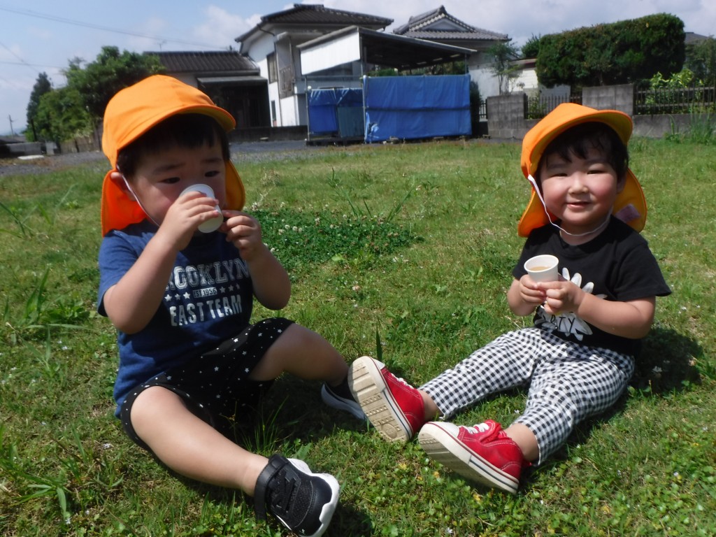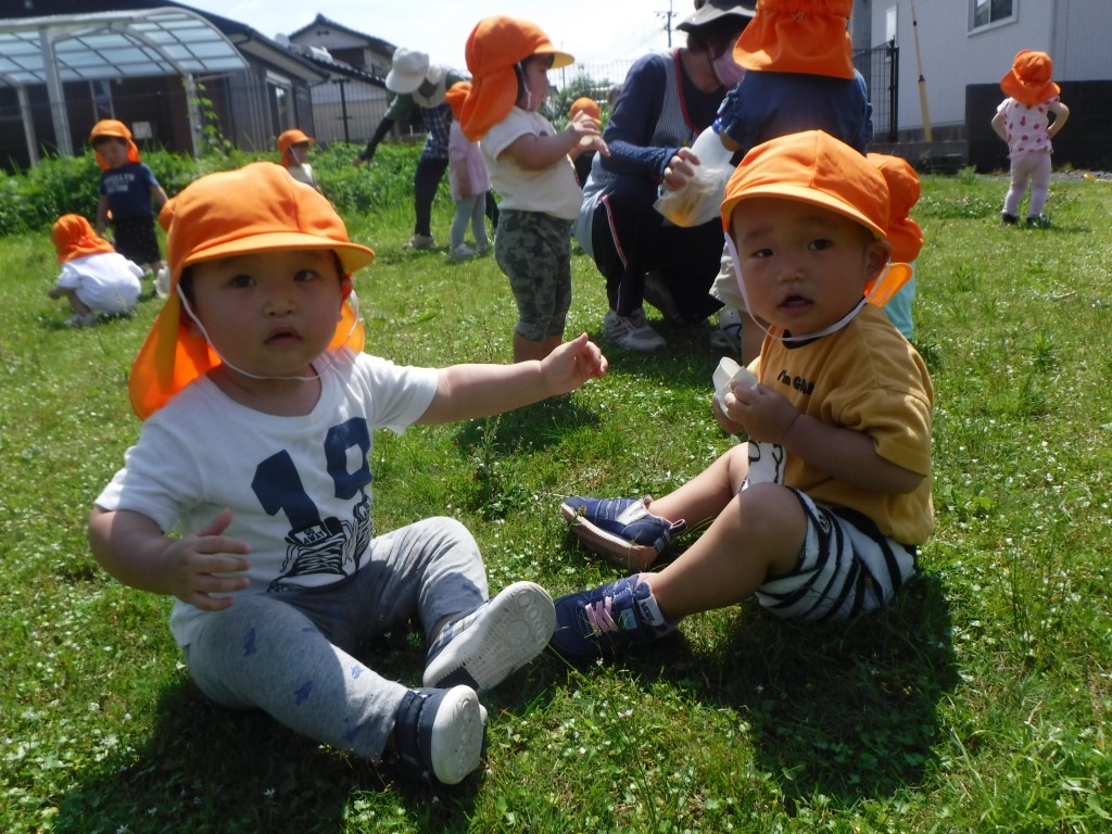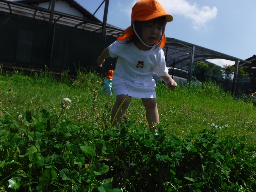 お花摘みをしたり、しゃぼん玉を追いかけたりといろいろなものに興味津々な子どもたちでした![]()