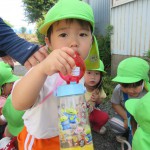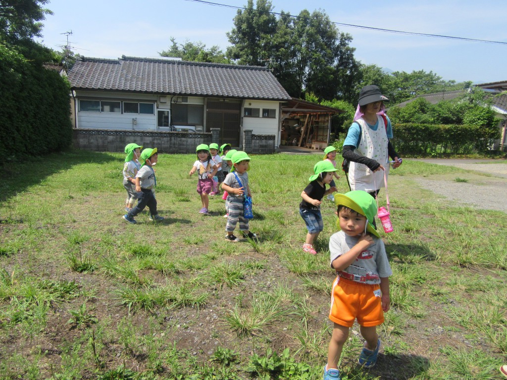 初めて水筒をさげて誘導ロープを握り、元気に歩きました