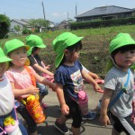 広場でお花を見つけたり、ちょうちょを見つけたりして