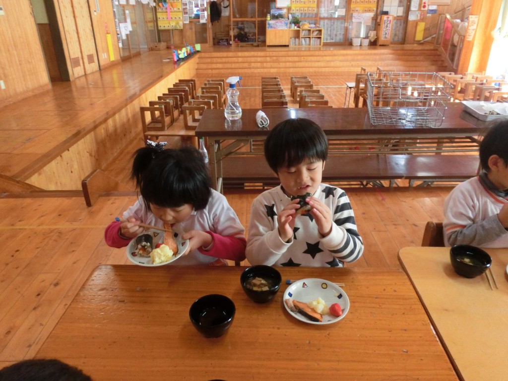 みんな決まりを守って、静かに食べていましたよ![]()