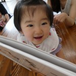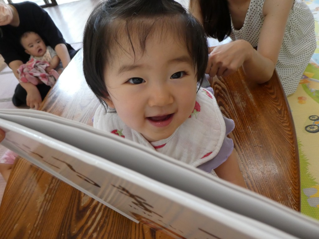 大型絵本【だるまさんが】を読んであげるとニコニコと近寄ってきました![]()