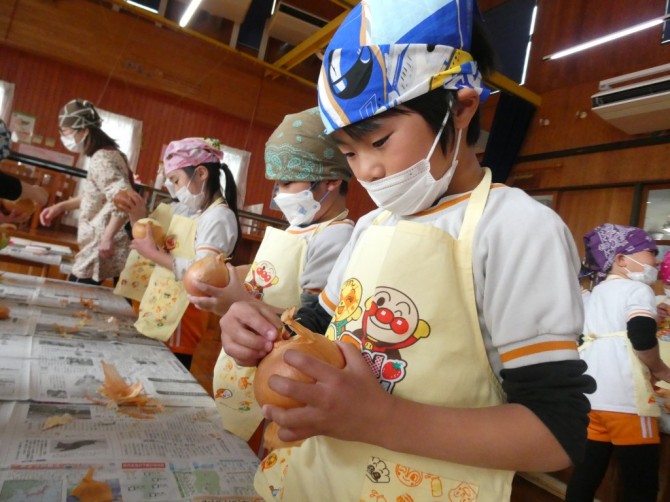 初めて包丁を使う子もいてドキドキのきりん組さんでした
