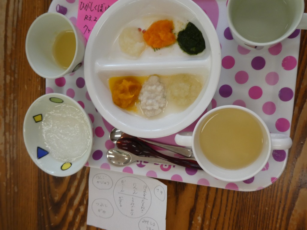 給食の先生が丁寧にメニューを書いてくださるので、わかりやすくて子どものペースにあわせて口に入れてあげることができます![]()