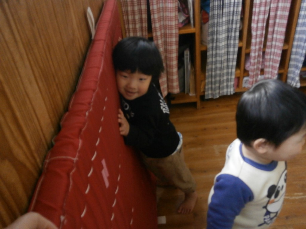 広いお部屋にみんなニコニコ元気いっぱい走って遊んでいましたよ![]()