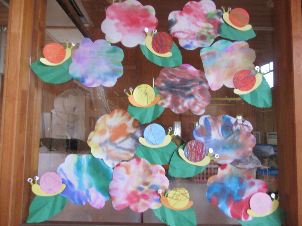 6月の製作であじさいとかたつむりを作りました。
